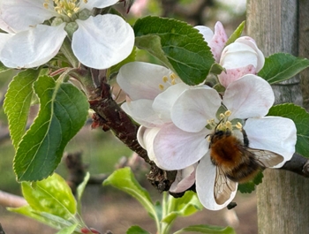 This week The English Apple Man visited a number of orchards in full bloom, but via my armchair as BAPL grower members have been allowing me access to their 'BAPL Orchard Watch' files. Beautiful blossom at various stages and a prolific be activity enhance these special pictures