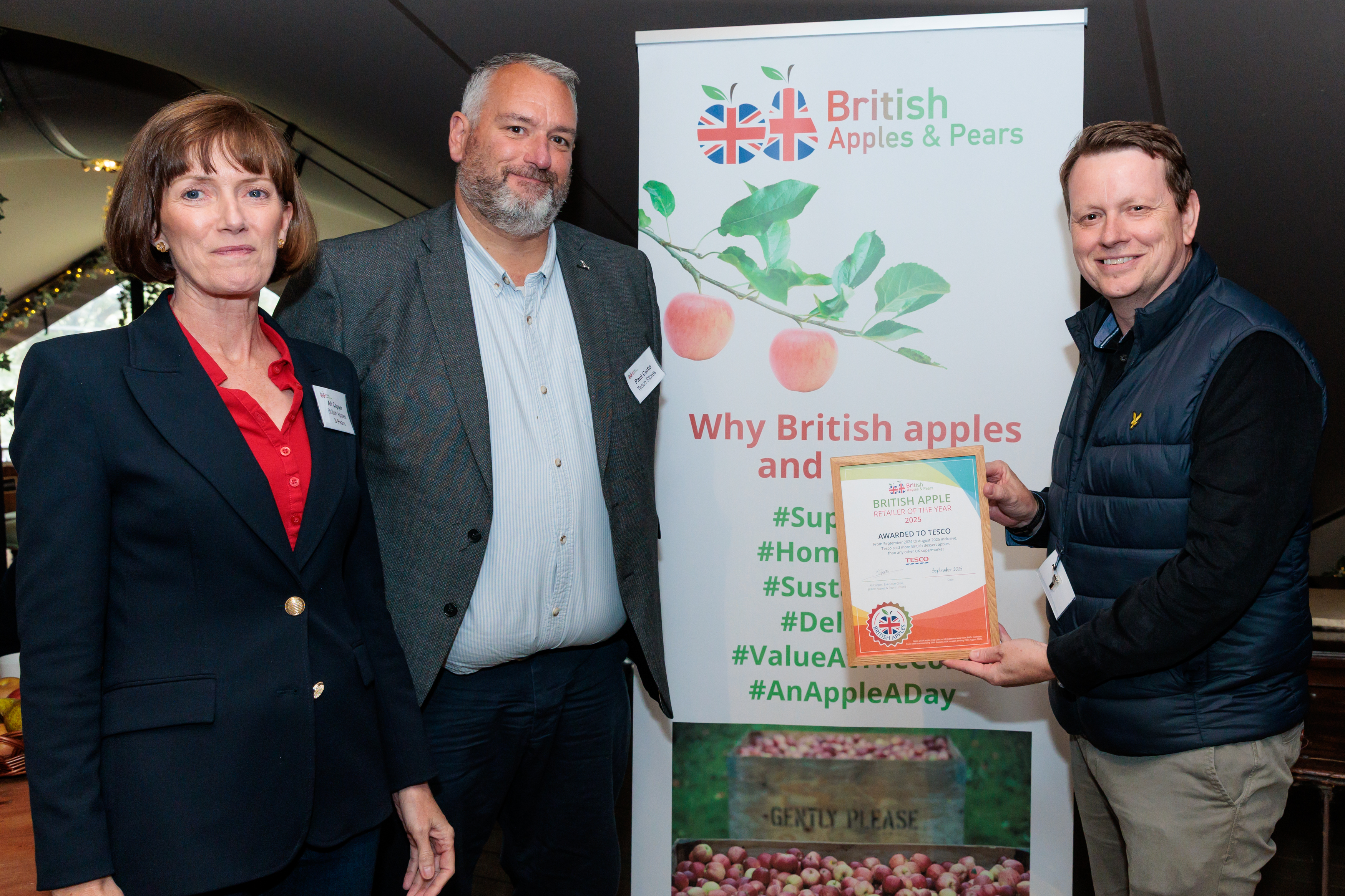 Below: Ali Capper presents Paul Curtis of Tesco with the award for most apples sold during the 2024/2025 season