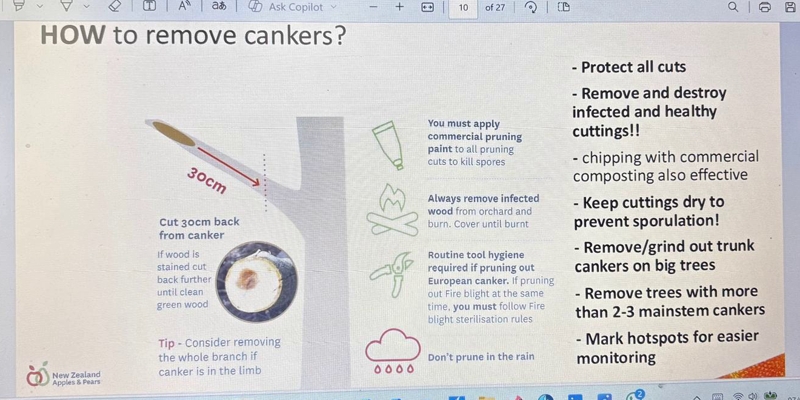 Mat spelt out the challenges of Canker, examined the attempts to kill canker at source, but emphasised the only way to stop canker destroying your trees/orchards is with practical containment actions.