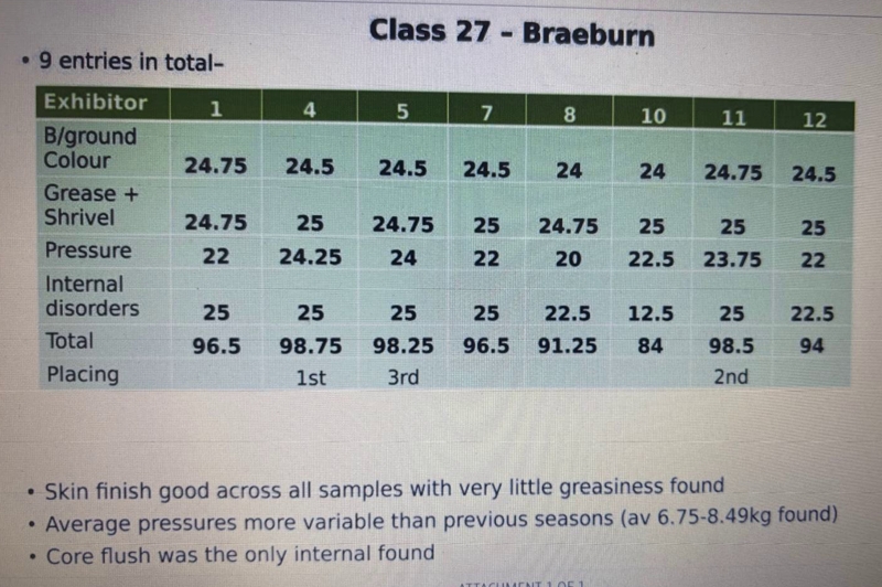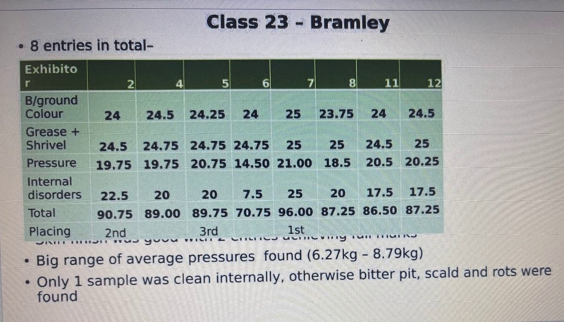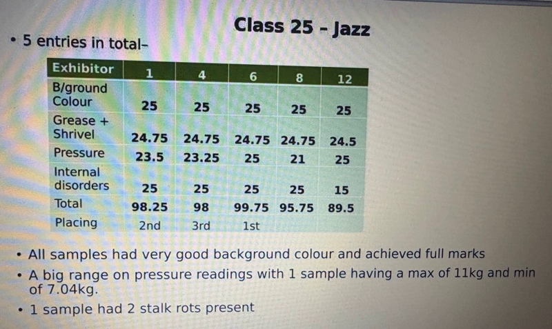 The standard of entries was very high with winning samples scoring from 96% (Bramley) to 99.75% (Jazz and Magic Star)