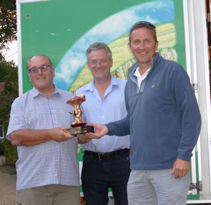 Below left; Andy Sadler presents Gay Hudd with her trophy for second highest marks Class 1: Below right; Andy Sadler presents David Quarrington & Clive Baxter with the Norman Collett Trophy - Class 1 for highest marks - pest & disease control: