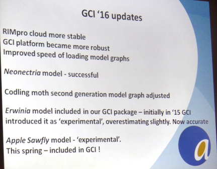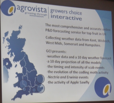 The English Apple Man attended a Seminar this week where advanced local weather forecasting is used to guide growers when the risks of fungicidal infection periods may occur and thresholds for pests reached.