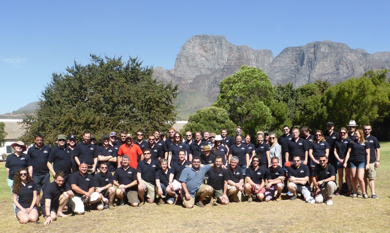 Before leaving the 'Hospitality' area at Boschendal the Under 40's posed on the lawns for a 'formal group' photo resplendent in Under 40's polo shirts....