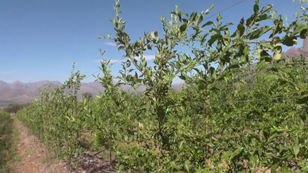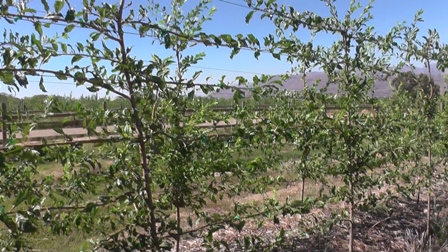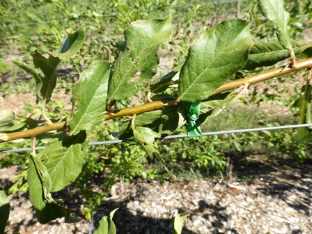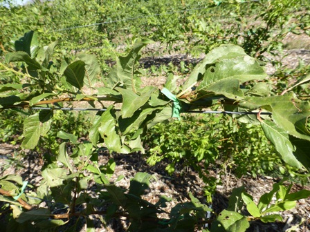 The new plantings are 'twin trellis' rows with trees spaced 1.5 metres apart and rows at 3.5 metres planted in August 2016 with Honey Punch/Fall Fiesta at 3810 trees per hectare and pollinated by Sunkiss/Fortune.