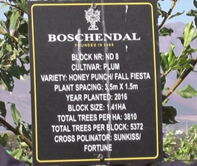 After lunch the delegates visited a new plum orchard; planted in August 2016 on a twin row trellis system. Jacque believes it is possible to 'break even' in year 2 with this system using new varieties from America. His whole philosophy is driven by planting the latest new varieties with large fruit in intensive tree systems in (of course) top quality soil. In fact Jacques said 80% of the new American bred varieties are exclusive to Boschendal in South Africa.