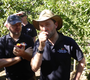 Below: Scott Garnet and U40 Chairman Charlie Dunn 'tuck into' these delicious plums - and - Jacques du Toit is thanked by Jane Antrobus and receives the U40's commemorative gift