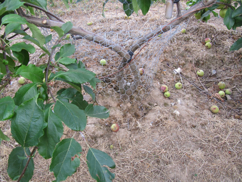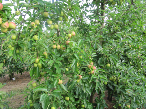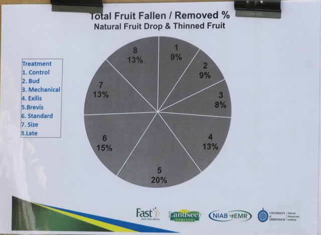 Below: The table below shows the percentage of fruit dropped (naturally or by thinning) from each treatment