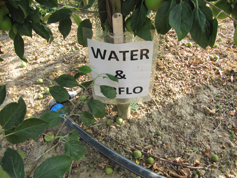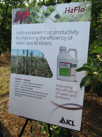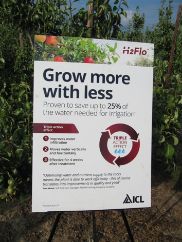 Rob Cooke who conducts the trial on a 'day to day' basis explained the water application strategy. By measuring the needs of the tree on water availability and measuring the rainfall, any deficit on the water applied to makeup the shortage is applied. At the same time, the area treated with H2Flo is raised to 75% of the target water application, with the added H2Flo delivering equal efficacy with 25% less water usage.