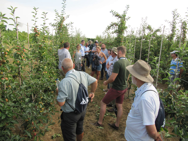 Below: James and the Fruit Science Delegates inspecting the Multi Stem Trial