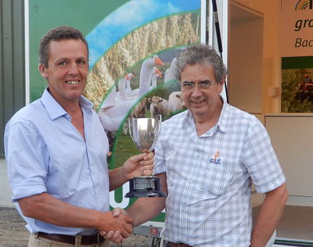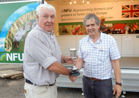 Below: left; William White and right; Nick Overy receives the BASF Championship Trophy for 'Overall Winner' from Martin Webber