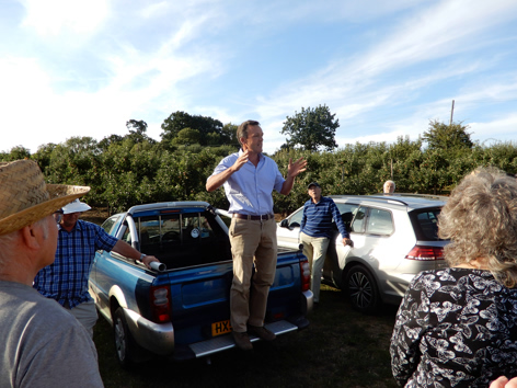 The evening started at Crouches Farm with an introduction by Nick Overy before a walk of the Gala orchards. We then set off for Burrs Hill Farm, just a mile 'or so' away.