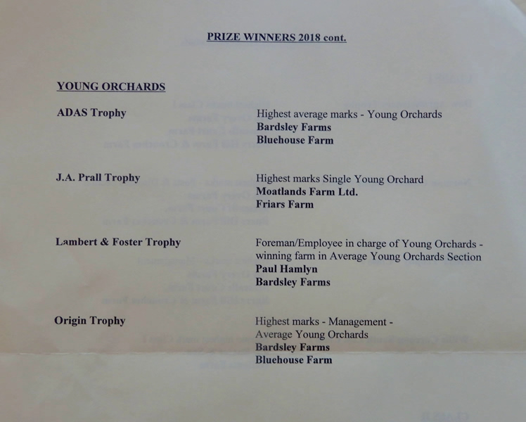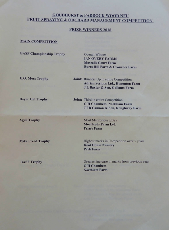 Below: listed; the Prize-winners of The 68th Goudhurst & Paddock Wood NFU Orchard Competition