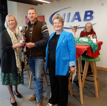 President Catherine Paice presents left. Gala Class winner AC Goatham and right. JL Baxter with their Pear Trophies