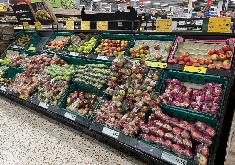 British Growers Insights data revealed that in the seven-week period from 2nd October 2023 to 13th November 2023, just 16.7% of the Gala apple packs (SKUs) on shelf in Tesco were British and only 20% of Asda apple packs were British. That compares to 100% in Marks & Spencer and Lidl, and 82.4% in Waitrose, 77.8% in Sainsbury's.
