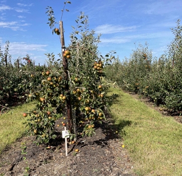 Below: left. an example of trees still carrying fruit and an earlier variety with all on the ground