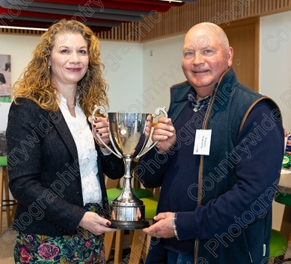 Below: Claire Seymour presents winning trophies to Darren Wallis @ AC Goatham, Simon Bray and Caroline receives the trophy for Braeburn on behalf of Moatlands Farms
