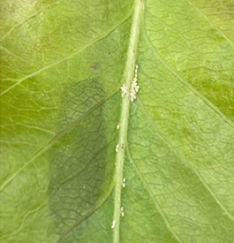 Below: Left. Anthocorids released to feed on Pear Sucker / Pear sucker eggs food chain for Anthocorids. / Pear sucker feeding /Credit Paul Hamlyn / Adult anthocorid