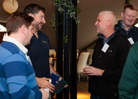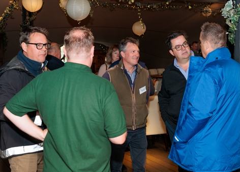 Below: left. Charnee in conversation with Charles Atkins and right. Mark Gaskain, Charles Atkins and David Long (facing) in discussion