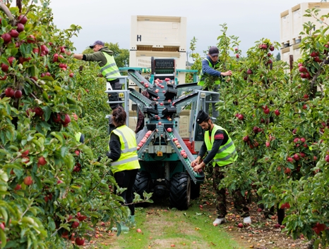 Below: Introduced gradually over the last 5-10 years, Apple Harvest machines are now standard on all the larger apple farms