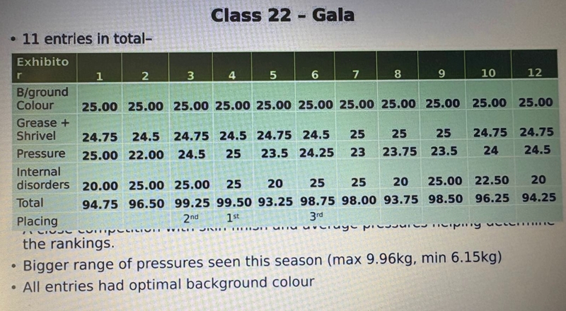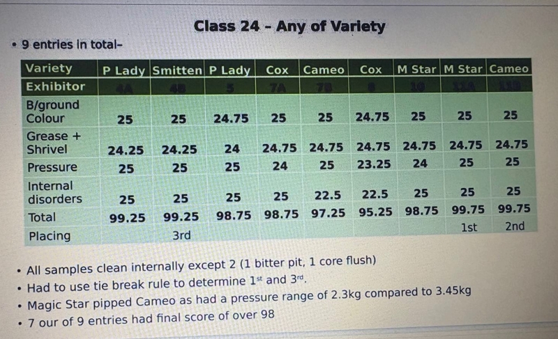 The standard of entries was very high with winning samples scoring from 96% (Bramley) to 99.75% (Jazz and Magic Star)