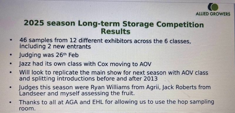 Each season the NFS runs a competition for the best samples of Long Term Stored apples and pears